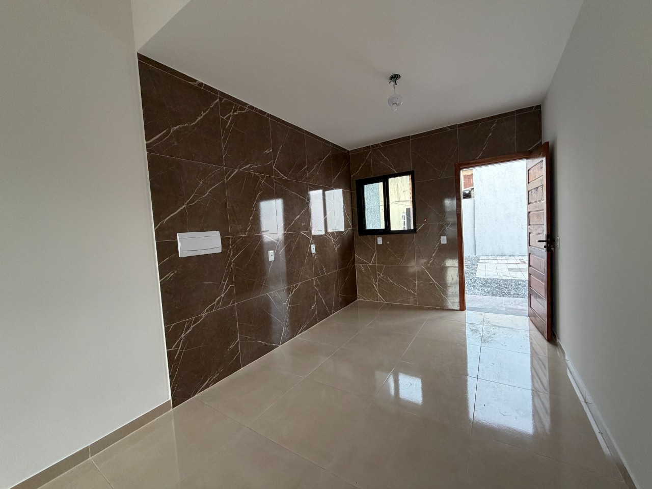 Será entregue com aberturas em alumínio na cor black, massa corrida nas paredes e piso porcelanato em todos os ambientes, garantindo acabamento contemporâneo e fácil manutenção.