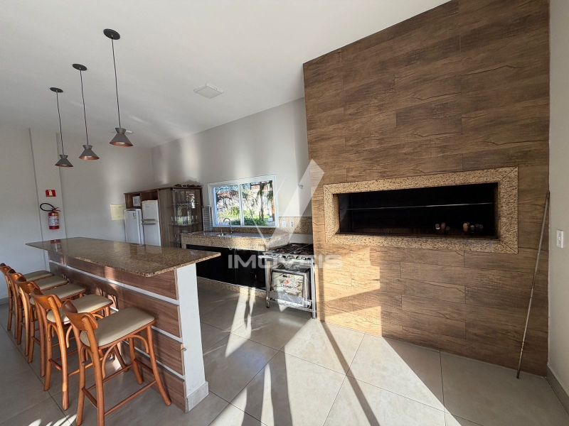 Entre os diferenciais estão churrasqueira, lavanderia, pátio fechado, piso laminado e cerâmico, água quente e construção em alvenaria, em terreno plano, oferecendo praticidade e conforto no dia a dia.